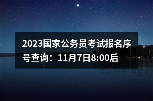 2023国家公务员考试报名序号查询:11月7日8:00后查询报名序号。通过资格审查的报考者,可于2022年11月7日8:00后登录考录专题网站查询报名序号,报名确认和下载打印准考证时需提供该序号,请务必牢记。