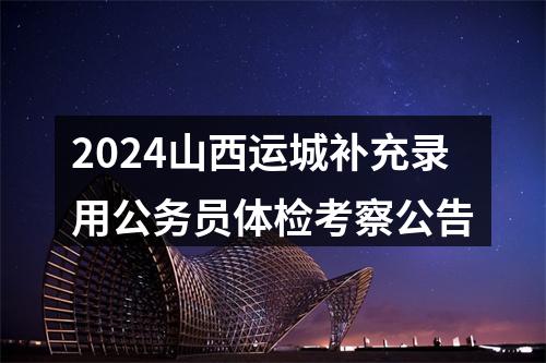 根据《山西省2024年度考试录用公务员补充录用公告》及公务员录用体检考察的有关规定,现将运城市2024年度考试录用公务员补充录用体检考察有关事项公告如下: